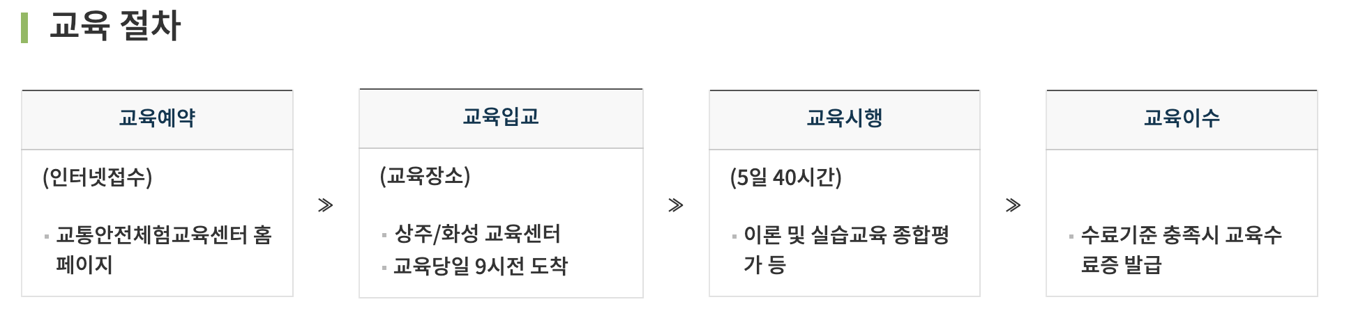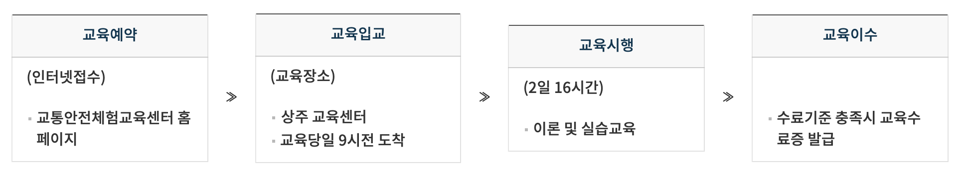 ※ 지자체마다 무사고 운전경력 인정기간이 상이하므로 관할관청에 사전 문의가 필요하며, 교육신청일 전 사고이력이 있는 경우에는 반드시 사전확인 후 교육신청 하시기 바랍니다.
